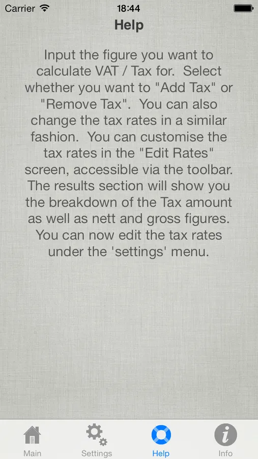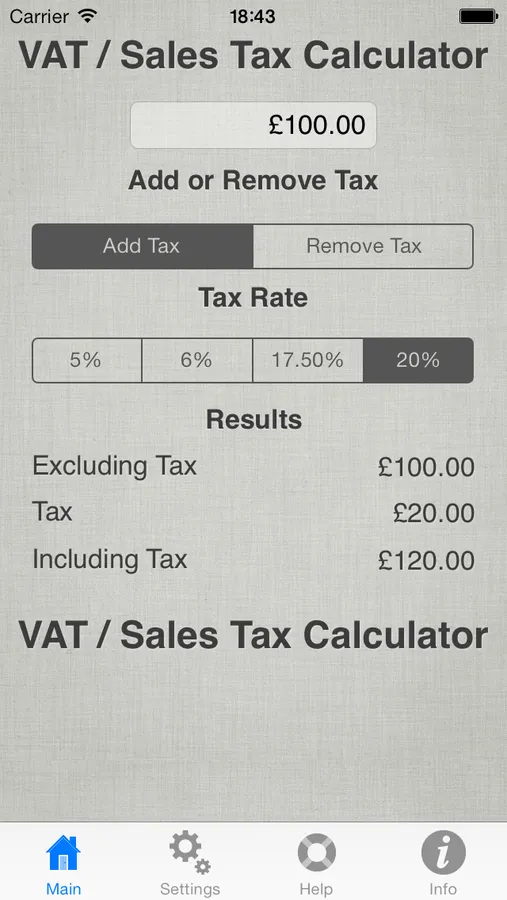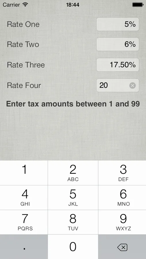 Please note: When entering amounts, to hide the keyboard you can either click on one of the controls (to add or remove tax or change the tax rate), or just tap on the background of the app.