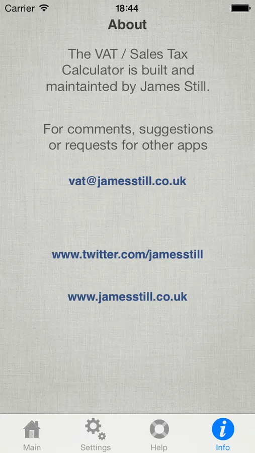 A simple application to allow you to calculate VAT / Sales tax on a monetary figure. This application allows you do vary the rate and to specify if VAT should be added or removed from the value supplied.