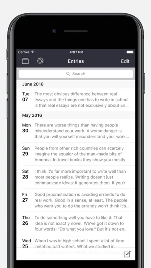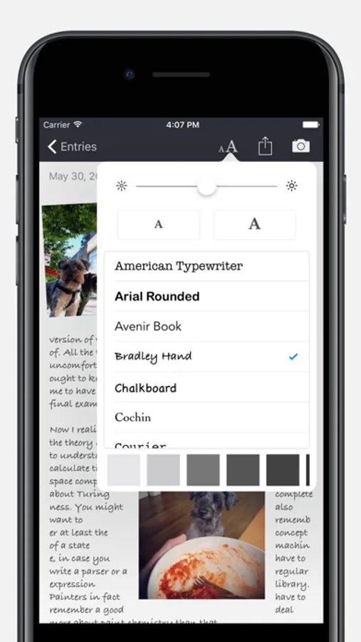 Stop squinting. In addition to being able to adjust the journal's font size, you can change the system's Text Size from the Settings app to make the UI text in Chapters easy to read. I've also added accessibility and VoiceOver improvements.