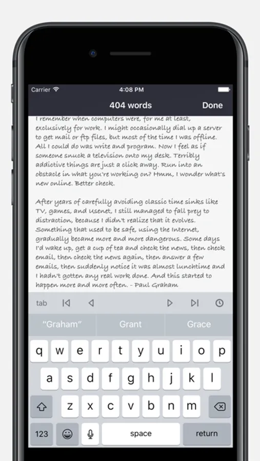 Enable word count to see how much you've written. You can also enable the extra keyboard buttons to jump forward and backward by word or character with a single tap, saving you time so you can focus on writing.