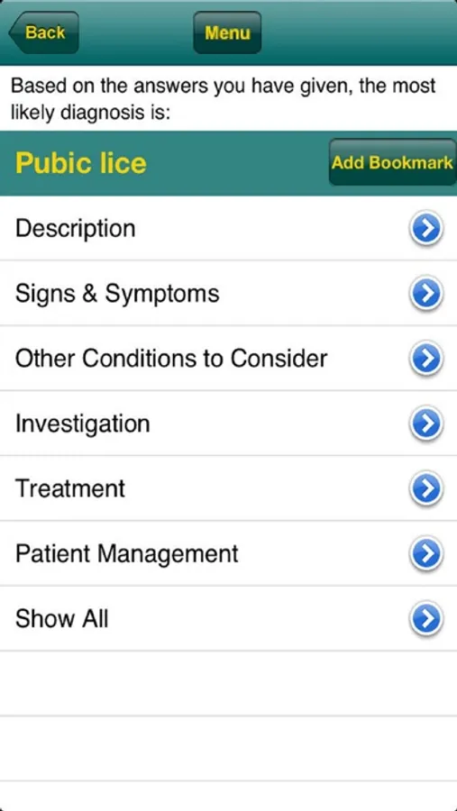 This information is intended to fully inform the patient about all aspects of their PROBABLE DIAGNOSIS and other conditions with similar symptoms so that they will be able to better understand and actively participate in their medical care. Rapid Diagnosis STD is not a substitute for a diagnosis made by a qualified medical practitioner, based on a thorough examination and appropriate investigations. All diagnosis made with this software should be confirmed by a qualified medical practitioner. The primary objective of this software is to encourage an active interest in health related problems, their diagnosis and treatment, and to empower patients by providing them with accurate, up to date knowledge, so that they may understand and participate in their health care.