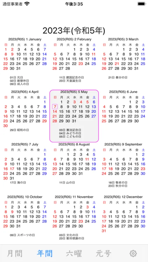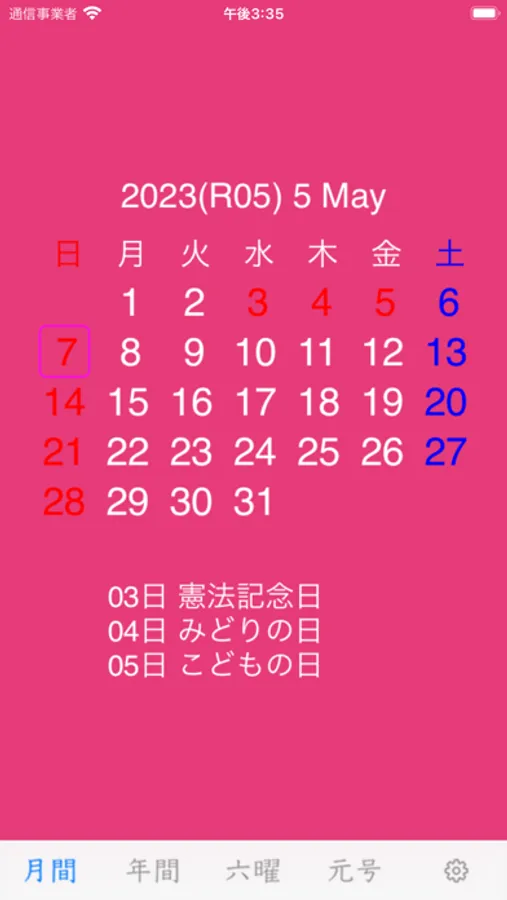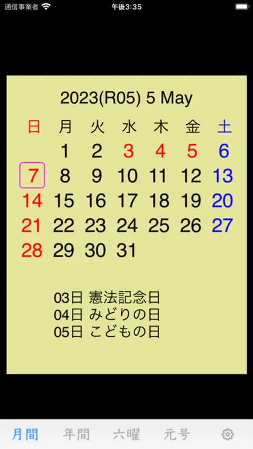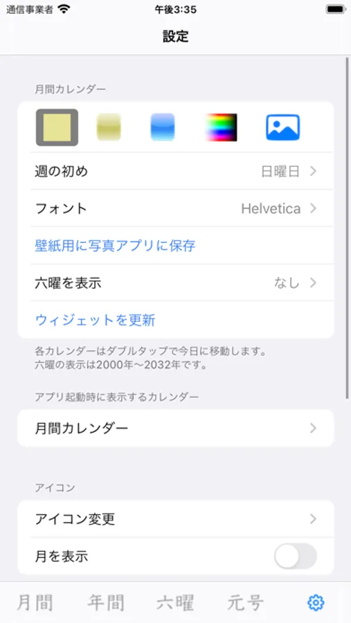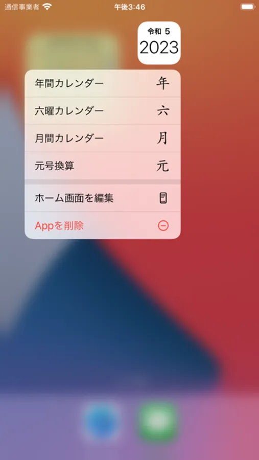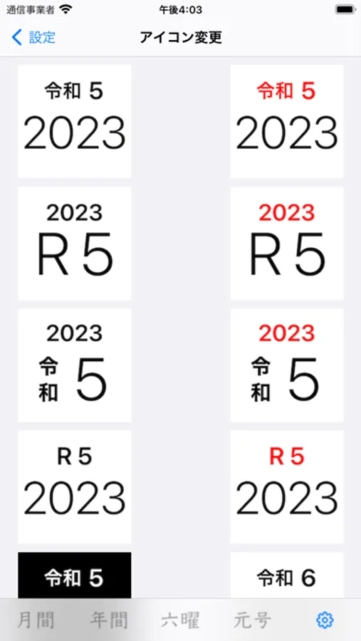 シンプルなアイコンですが、ホーム画面で西暦・和暦の年月が確認できます。