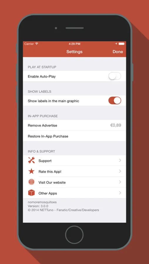 ▪ Audio Background: the ultrasound keeps playing even when you close the application. You can keep using your iPhone without losing mosquitoes repellent effectiveness.