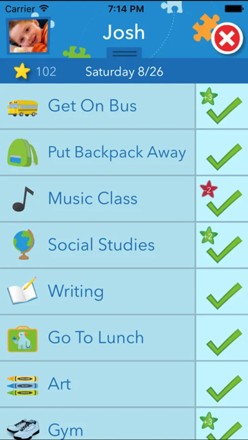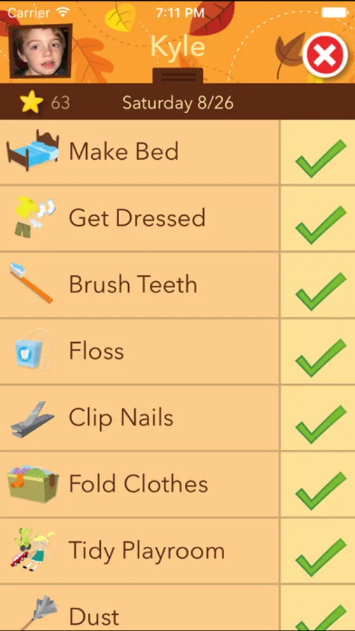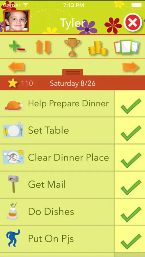 See all your kids at a glance on the start screen along with their star totals and progress for the week. Chore Pad works equally well with small families, large families, and entire classrooms of kids!