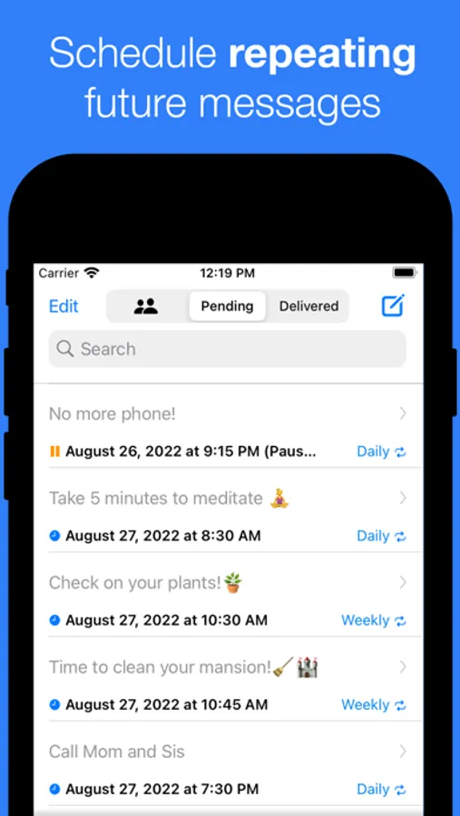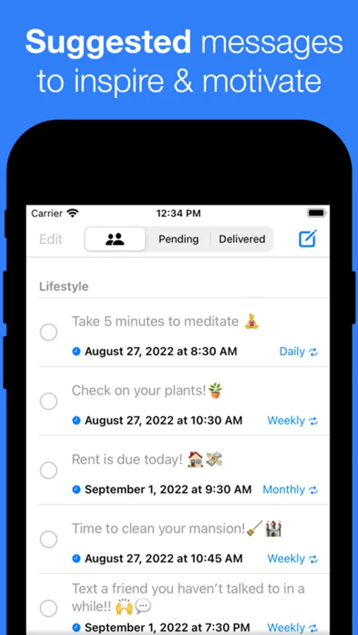 • Recurring Pep Talks: Some messages are too good for just once. Schedule your regular doses of motivation, chore reminders, or even those crucial medication alerts. And hey, it's always a good time to reconnect with loved ones, right?