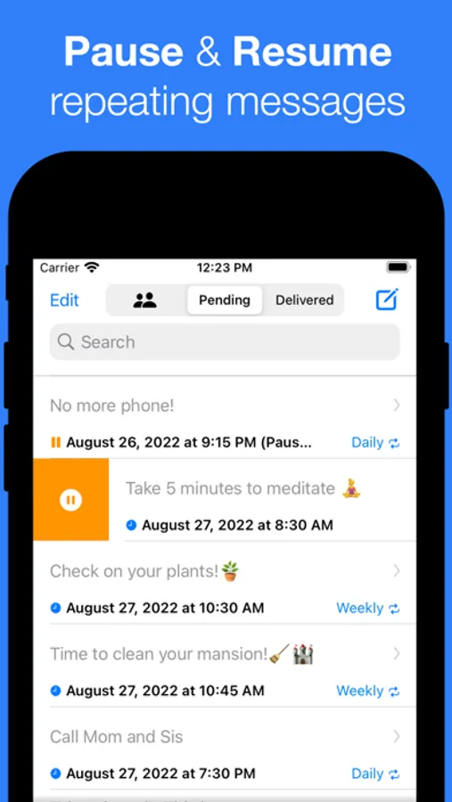 • Full Control Over Messages: Traveling or need a digital detox? Simply swipe to pause those reminders. Ready to dive back in? Swipe to resume. It's that easy.