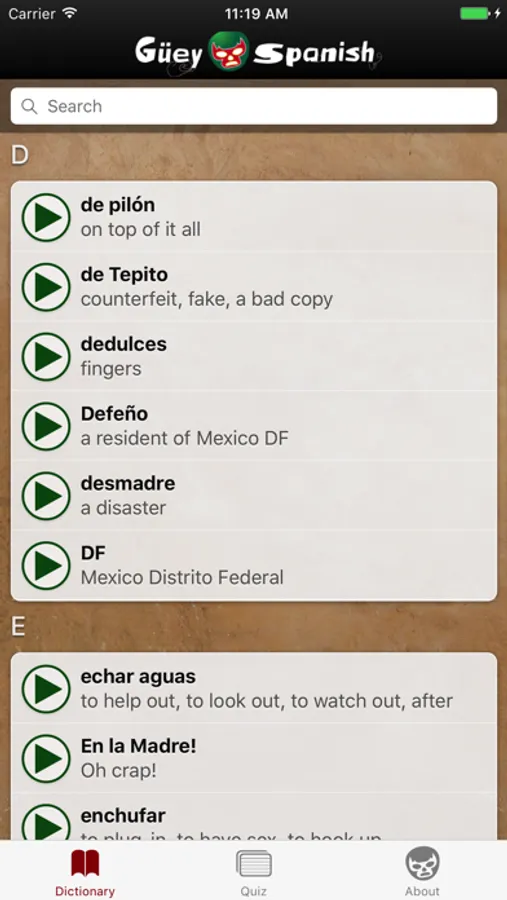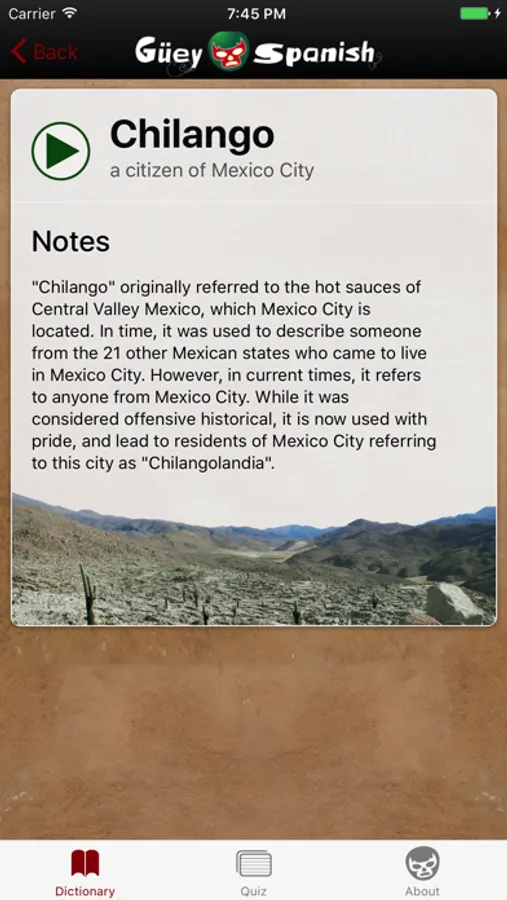 ¡Órale, güey! Want to speak like a chavo from Chilangolandia (Mexico City)? This app is for you. Learn to talk like a fresa or naco!