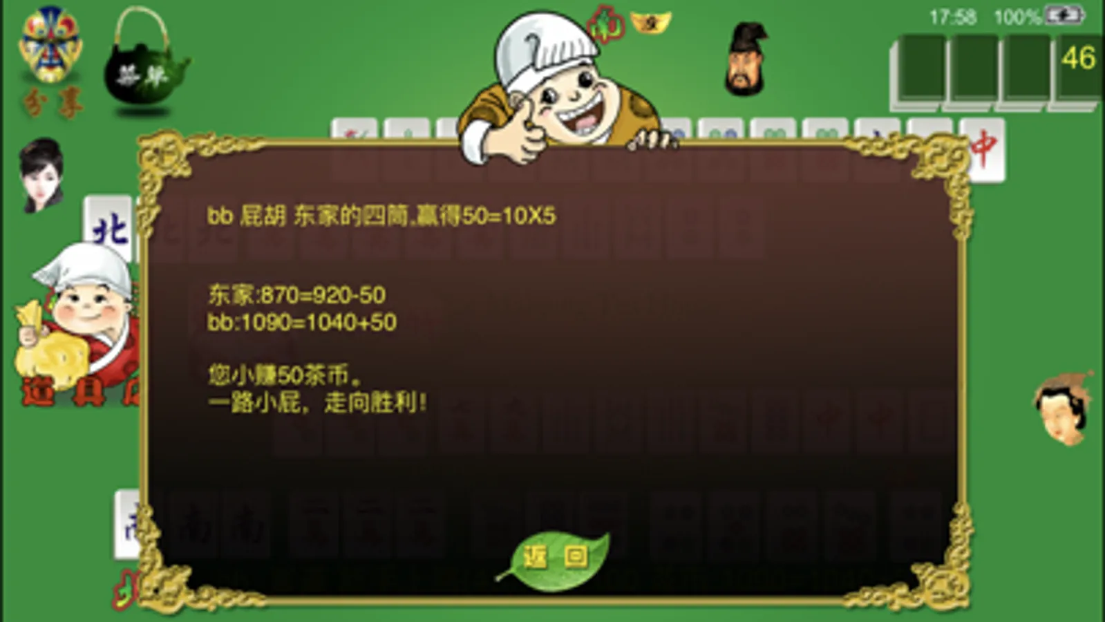 ‘单机篇’则秉承pharose系列益智游戏一贯强大的人工智能和清新独到的中国风茶馆设计。电脑陪客们的高超牌技;可自定义的灵活算番规则;犹如现场演奏的国乐经典曲目;可自选的二十余种方言配音;胡牌后的拍马搞笑语录;可向店小二换购的大牌牌架;尤其是胡牌后奖励的二级PK游戏等独家特色设计...令您在没有牌友凑手时, 也能真切地感受到坐上茶艺馆麻将桌的乐趣。