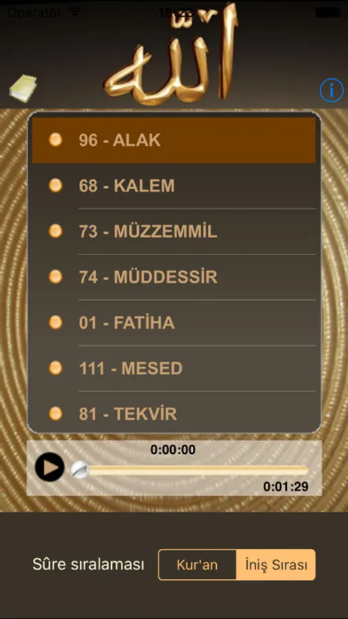 Kur'an-ı Kerim'in Türkçe meailinin tamamını (internet bağlantısı olmadan) dinleyebilir, otomatik olarak kaldığınız yerden devam edebilir yada dinlemeye istediğiniz sûreden başlayabilirsiniz.