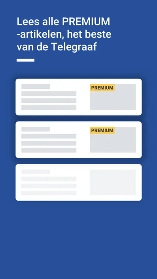 De app is gratis beschikbaar. Alles van De Telegraaf in 1 app met de toevoeging van de digitale krant. De digitale krant is toegankelijk voor abonnees met een digitaal en een combi abonnement op De Telegraaf. In de app vind je ook PREMIUM-artikelen. Deze artikelen bieden het beste van De Telegraaf en opinie van onze bekende columnisten. In de app zijn de PREMIUM-artikelen herkenbaar aan het gele label “PREMIUM”.