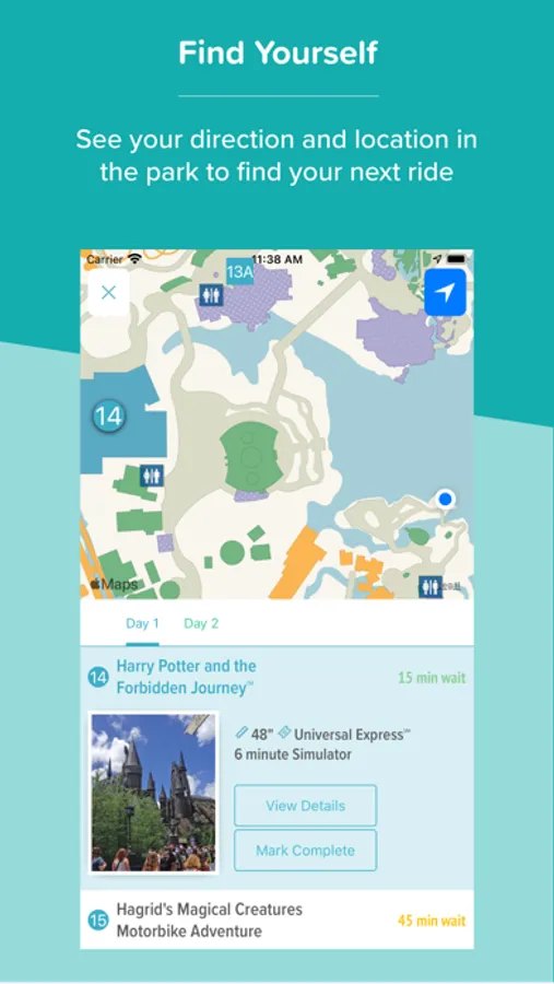 Your handheld guide and planning tool for all of the Walt Disney World® Resort, Universal Orlando® Resort and SeaWorld® Orlando theme parks. Do more and wait less with preset and customized touring plans, wait times and easy access to all the details of your favorite attractions. Use the directional compass and interactive maps to navigate each park, view wait times and execute your touring plan.