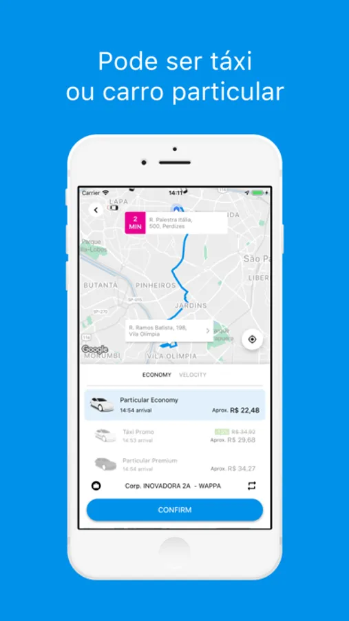 Solicite as corridas com a Wappa, através da sua conta pessoal. Motoristas qualificados, viagens em segurança e diversas categorias de táxi e carro particular.