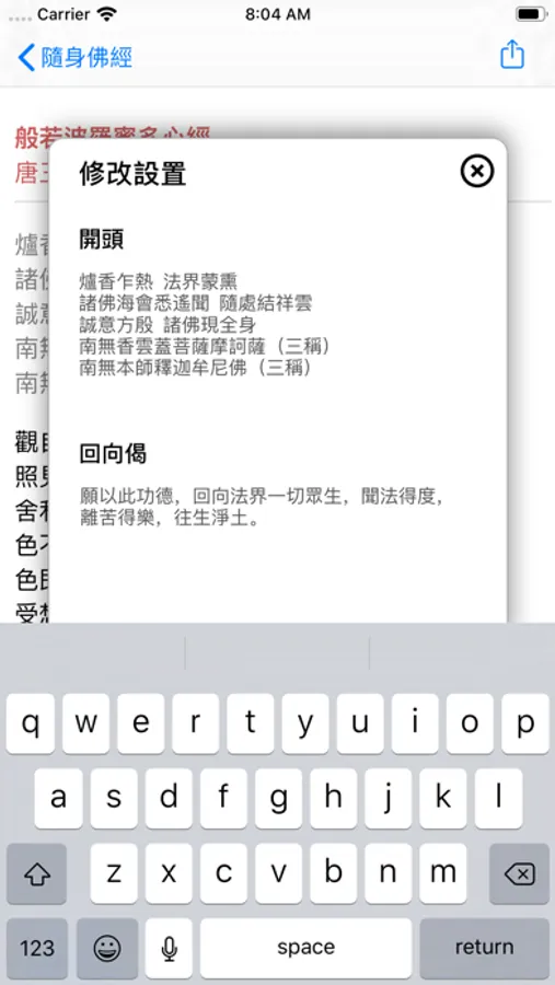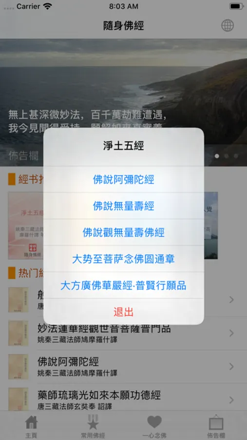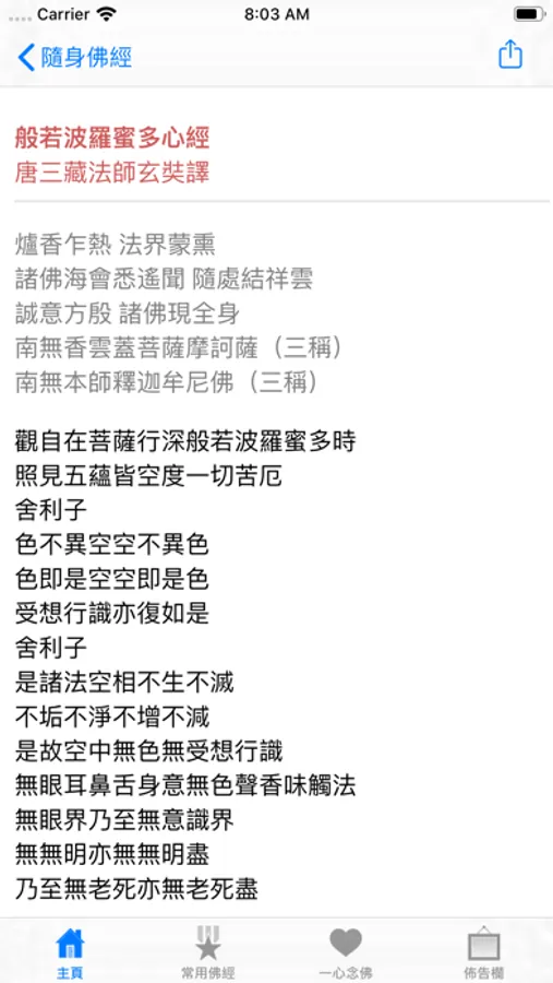隨身佛經為佛教徒提共一系列常用的佛經(简体和繁體)。有了它,無論您身在何處,只要拿出手機就可以接觸到佛法。