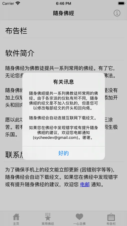 為了確保手機上的經文能立即更新 (因錯別字等等),隨身佛經會自動下載經文。