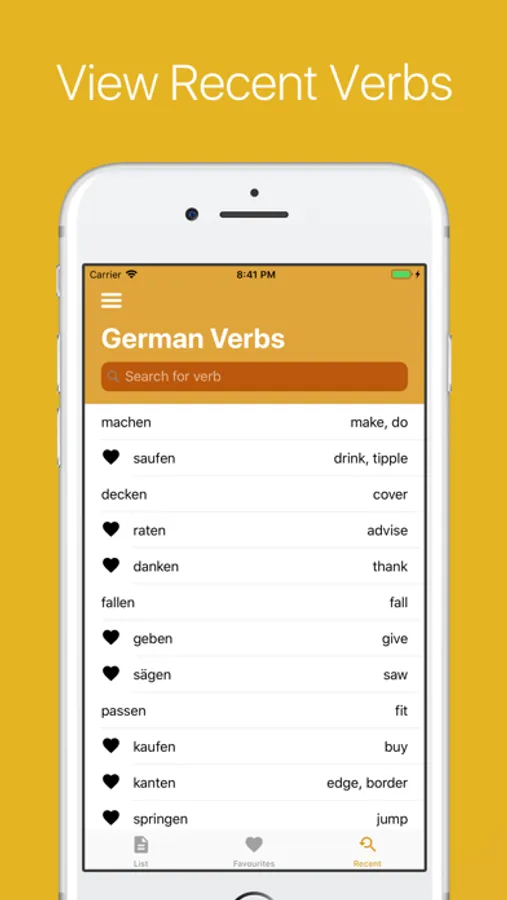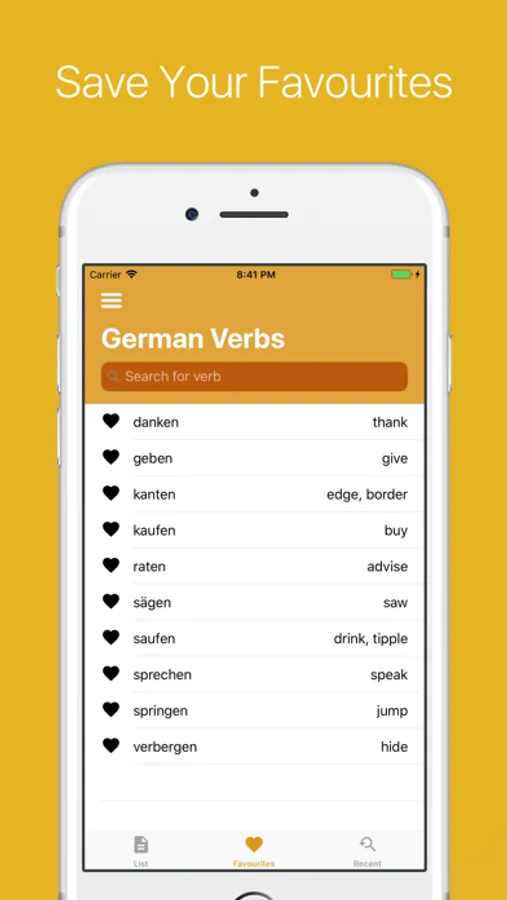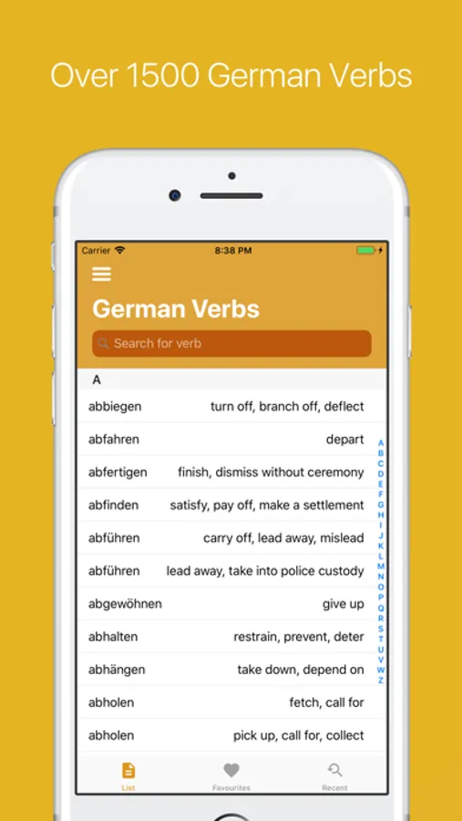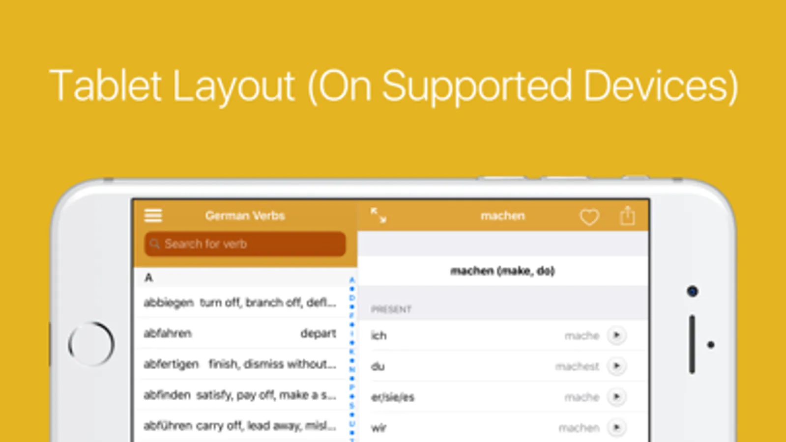 View over 1500 German verbs in 16 tenses. With simple navigation and built in search, you can find the verb you need in seconds.