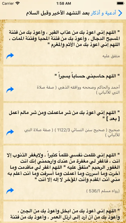 مع إمكانية نشر جميع الأدعية و الأذكار على تطبيقات التواصل الإجتماعي لمشاركة معارفك.