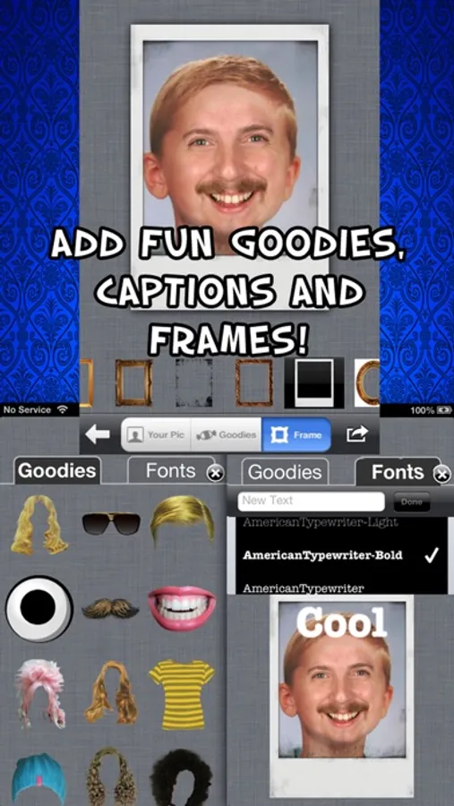 - When your done click on the goodies tab to add fun stuff to your pic!