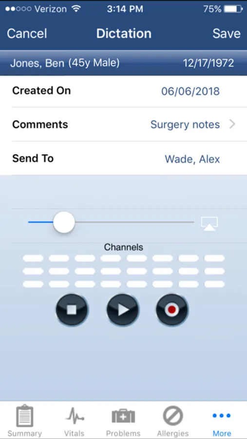 • Dictation: The iPhone dictation feature allows bedside dictation to be added directly into the patient’s electronic medical record.