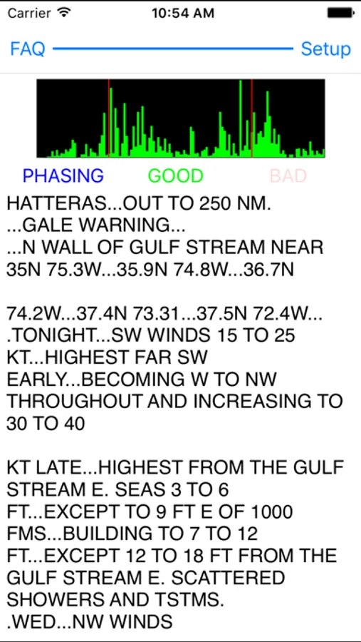 NAVTEX Pad lets you view NAVTEX and Radio Teletype (RTTY) marine weather transmissions on your iPhone, iPod Touch, or iPad. Just set it near a radio (or for better quality decoding, connect a cable from the radio's audio output jack to the microphone jack), tune in a NAVTEX frequency (usually 518 kHz), and watch the transmissions.