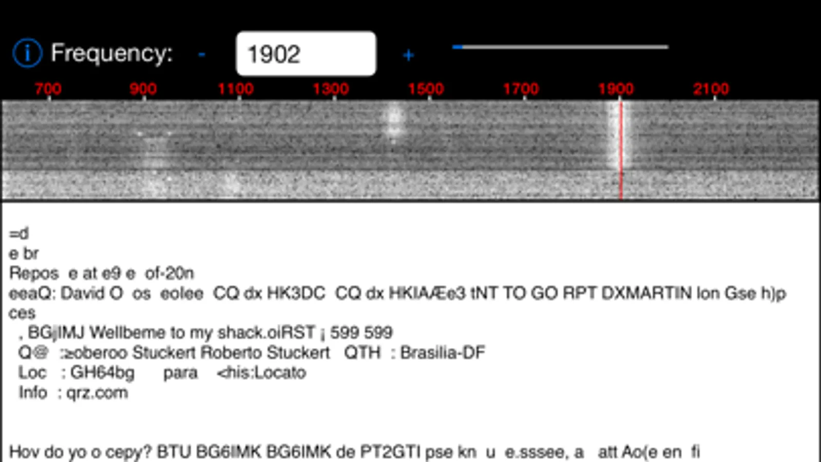 There's a waterfall display of the audio spectrum, showing all of the PSK31 transmission. Tap on a signal, and PSK31 tunes into that transmission.