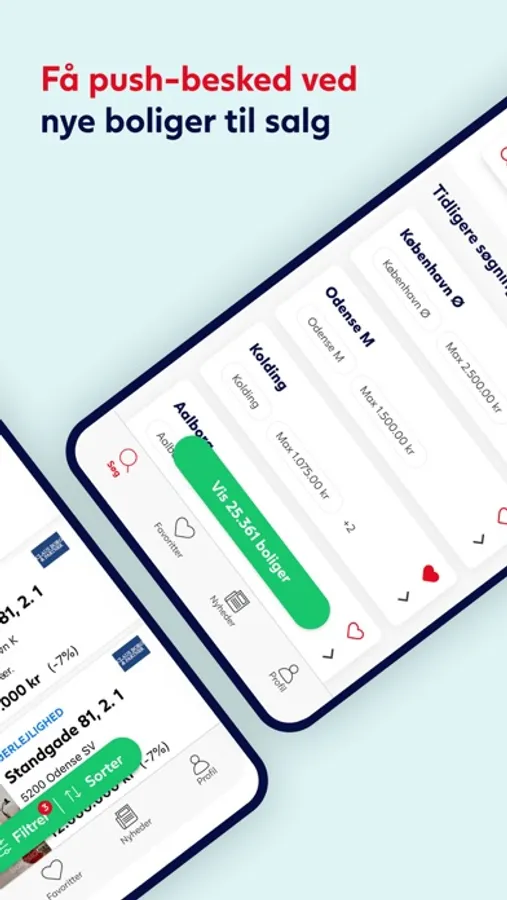 Du kan også læse nyt om boligmarkedet i appens nyhedssektion, og tilmelde dig push-beskeder inden for nyheder. Vi udgiver dagligt nyheder om udbud, boligpriser, antallet af handler og meget mere. Du kan også læse artikler, hvor vi præsenterer den flotte villa, den naturskønne landejendom, det helt særlige sommerhus eller den elegante lejlighed.