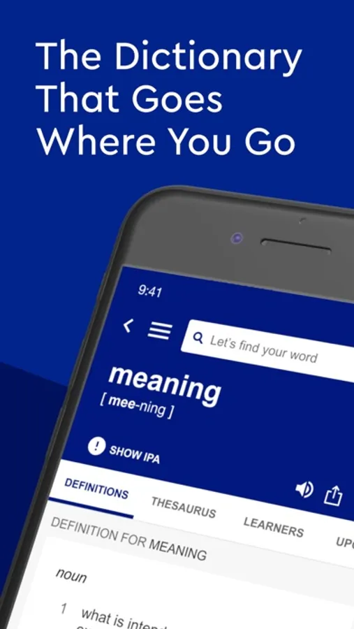 With more than 2 million trusted definitions and synonyms plus word puzzles, language quizzes, and spelling quizzes, this English dictionary and thesaurus app for iPhone is optimized with your mobile device in mind to help you learn English or improve your English vocabulary.