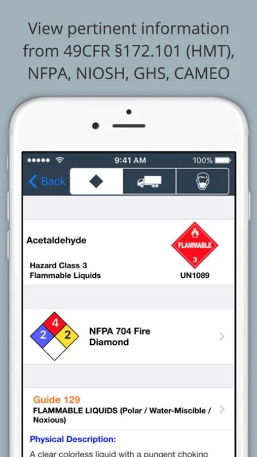 Your best quick reference for hazardous materials. Includes: NIOSH, CFR/HMT, NFPA, GHS, CAMEO information.