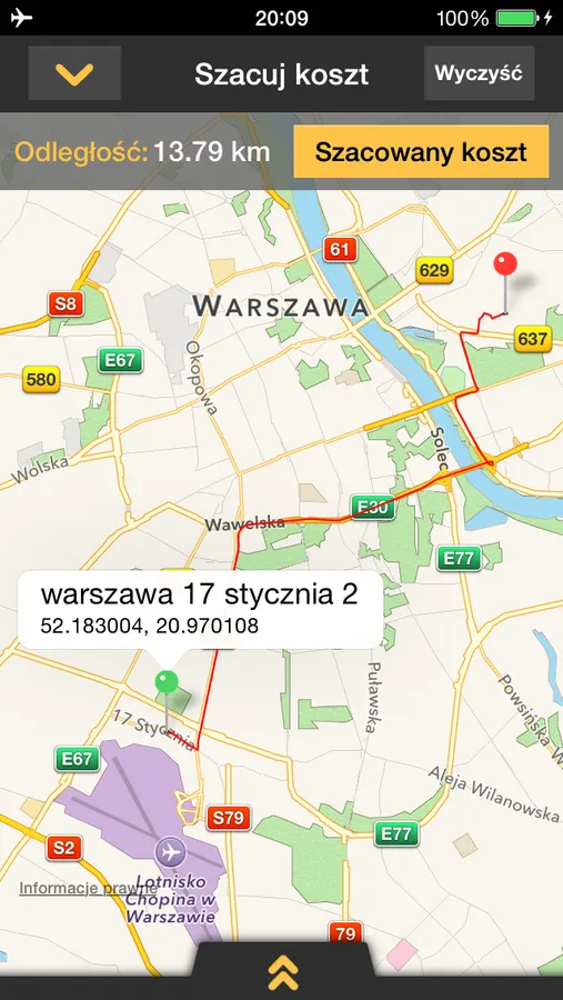 * Możliwość sprawdzenia kosztu całego kursu przed zamówieniem na mapie