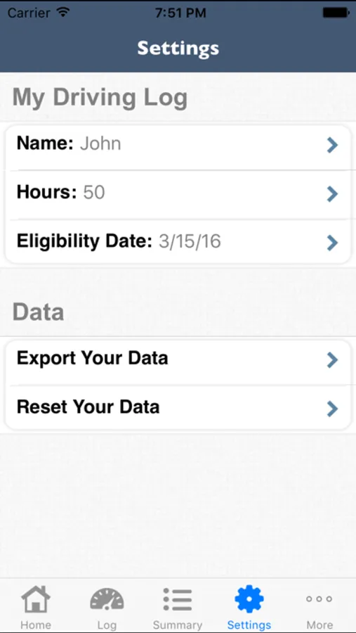 • Save data with iTunes sharing to save and/or restore to a different device (share log data with multiple devices)