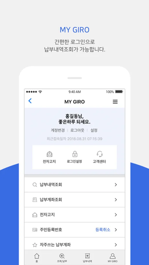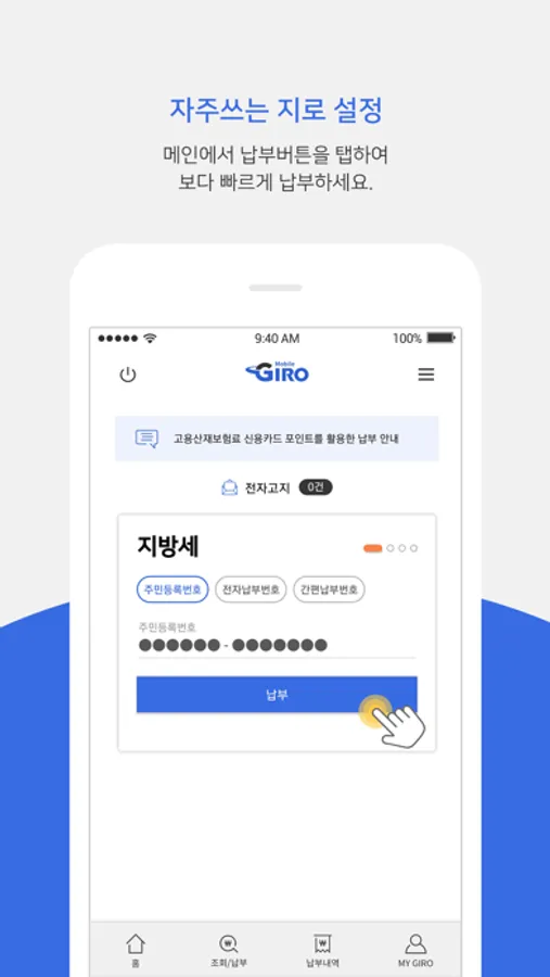 아이폰으로 지로요금, 각종 세금, 공과금을 납부할 수 있는 모바일지로 애플리케이션입니다.