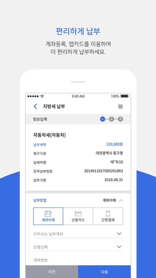 - 카메라 : QR코드 납부를 위한 QR코드 촬영