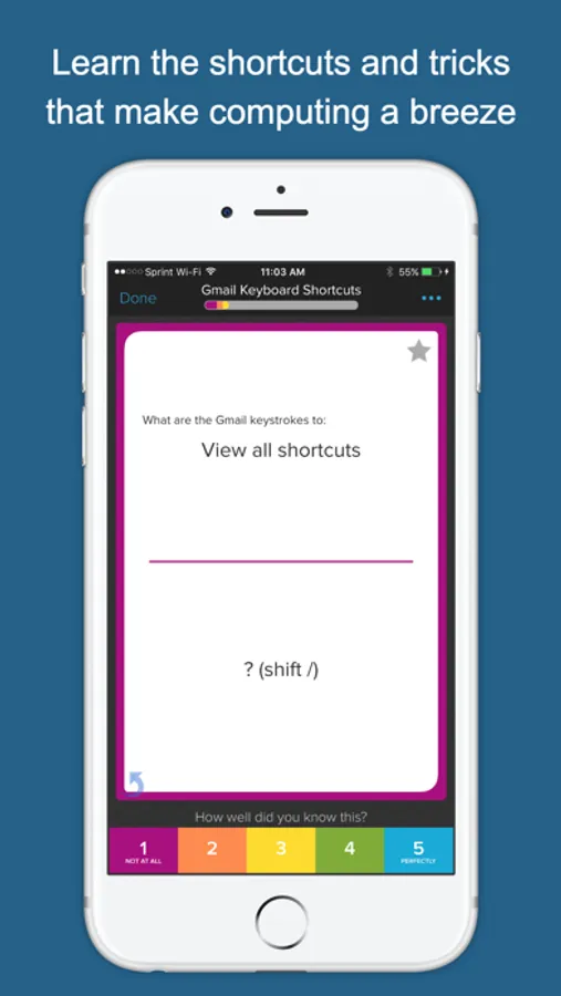 • Over one hundred flashcards representing the most useful keyboard shortcuts for Mac, PC, web browsers, spreadsheets, and Gmail