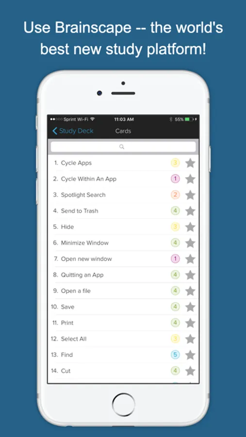 Rather than creating frivolous games or distracting quizzes to try to make learning “fun,” Brainscape provides a scientifically optimized algorithm to repeat flashcards in just the right pattern for your brain’s maximum absorption, based on YOUR confidence. Brainscape helps you easily integrate short, fast review breaks into your busy day, to help you make any moment a learning moment – and to help you become more productive!