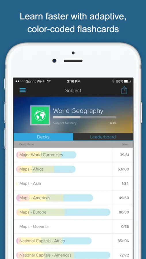 • Over 1,000 flashcards to drill you on maps, flags, capitals, and even major world currencies