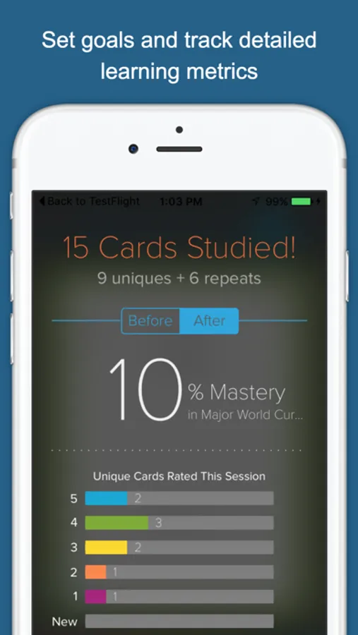 • A customized flashcard repetition algorithm that cuts your memorization time dramatically