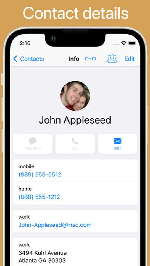 ... phone numbers, email addresses, postal addresses, birthdays and notes