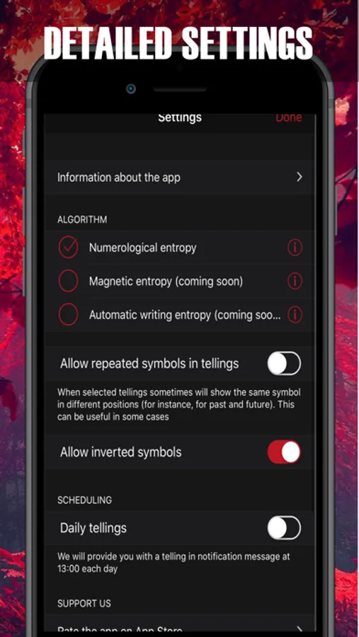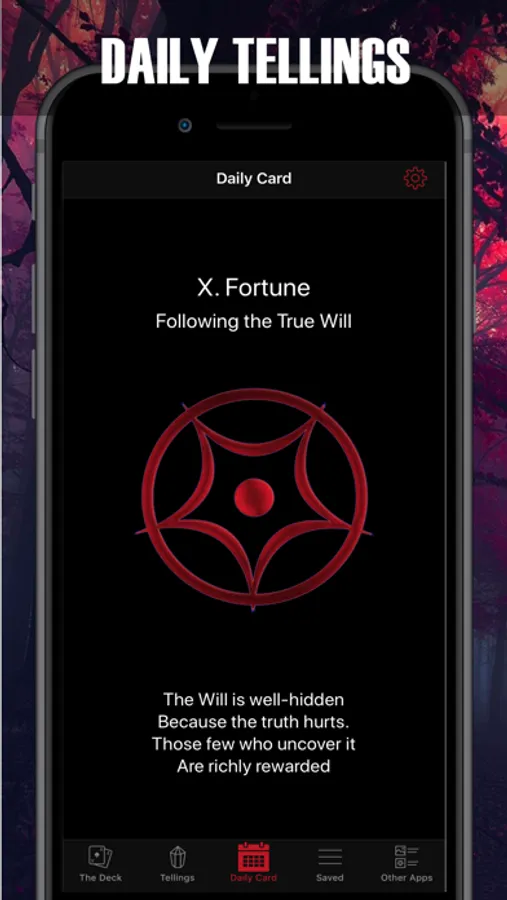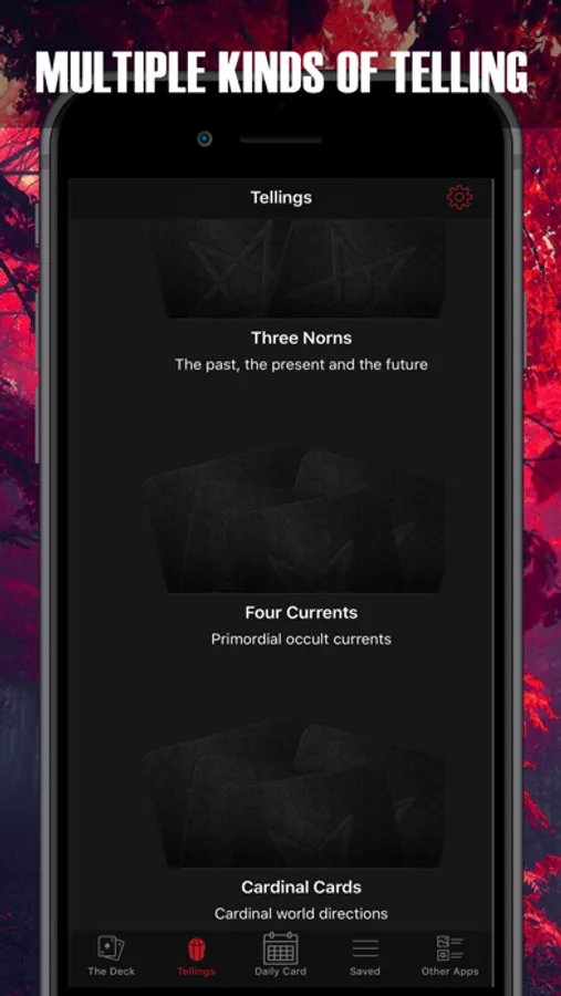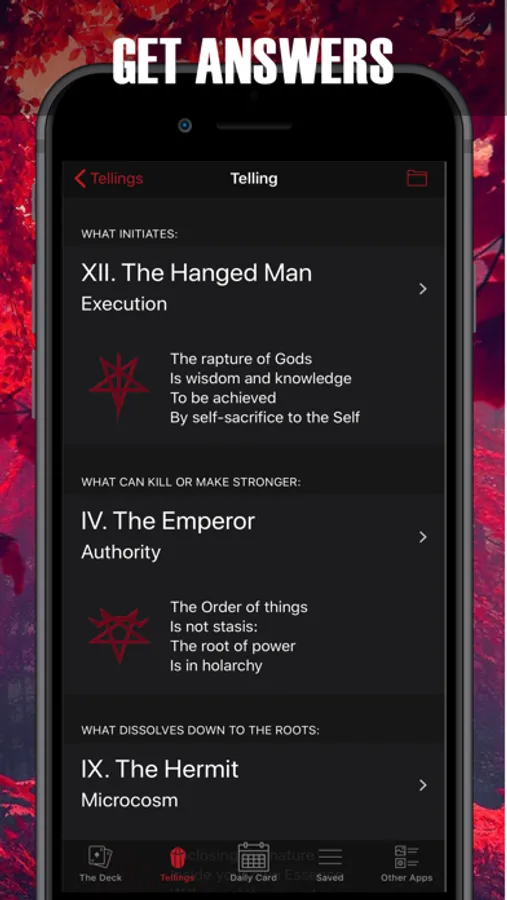 The Satanic current has always been the power fuelling the cutting edge of progress. Our age of machinery is not an exception: we are facing the rise of pure Luciferian technomagic. The application we present has been created for all left-hand path scholars practicing different kinds of Sabbatic Arts. Here you will find 22 dark portals to guide you on the way to your inner black hole of selfhood.
