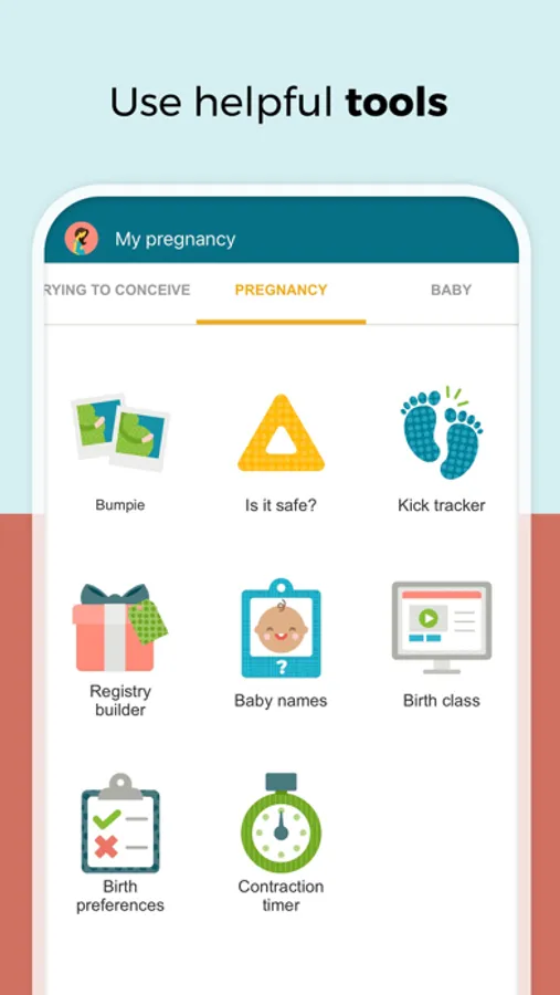 • Enjoy pregnancy workouts and nutrition advice tailored to your trimester