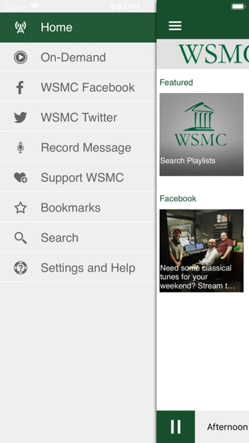 The WSMC Public Radio App allows you to listen to WSMC live, pause and rewind the live audio, and view the program schedule all at once! You can explore On Demand content, search for stories, and wake up to WSMC with the alarm clock!