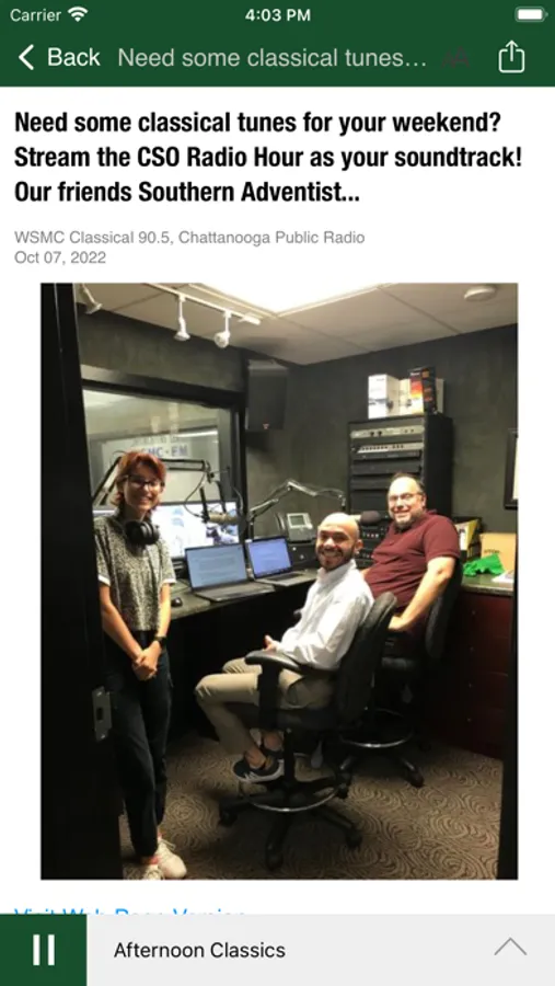 • The WSMC Public Radio App displays the web page associated with the program or story segment you are listening to On Demand so you can explore for more information.