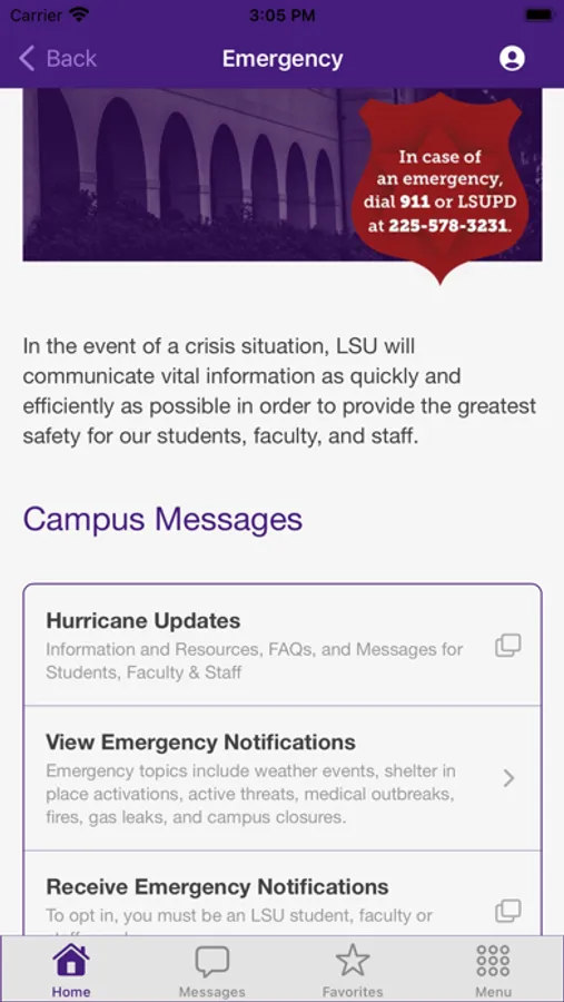 - Emergency Messaging – Subscribe to campus emergency notifications to get real-time alerts