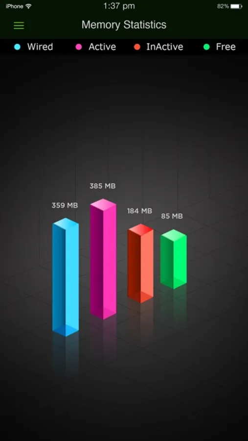 Double tap the speedometer, to see a 3D bar view of the different break up of the memory used. Like, Free, Wired, Active and Inactive memory of your iOS device.