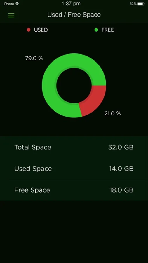 This is shown as a pie-chart that presents the used and free space available on your iOS device.