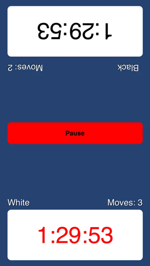 Once the clock is started the clock for the person to move starts counting down and the Clock text color changes to Black. The reset button, settings button and clock adjustment buttons are not available whilst the clock is running.