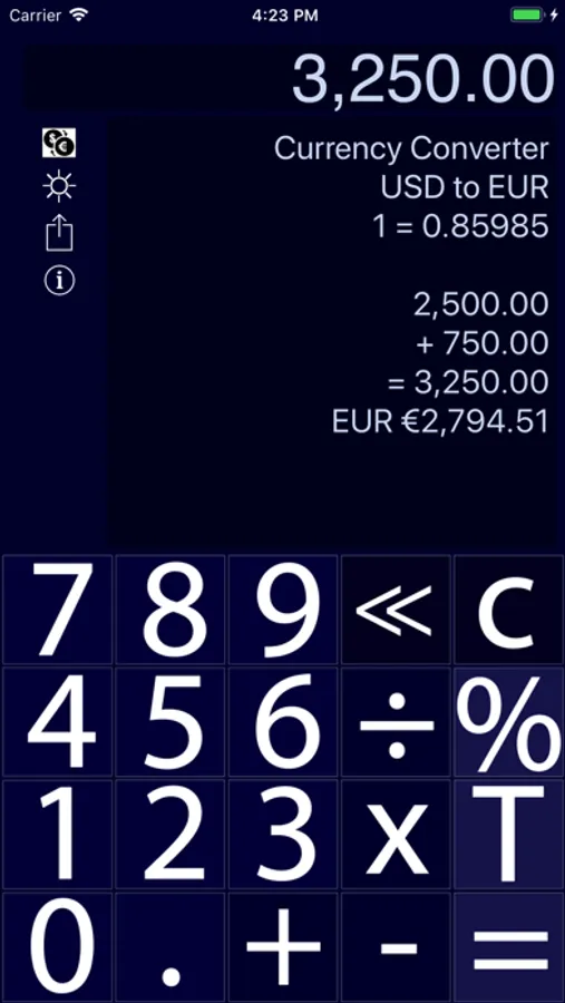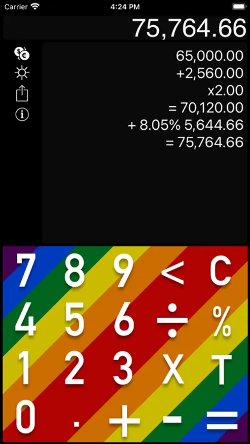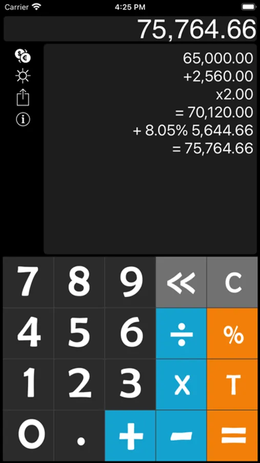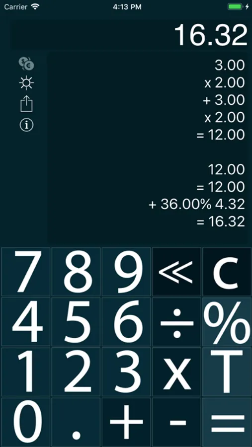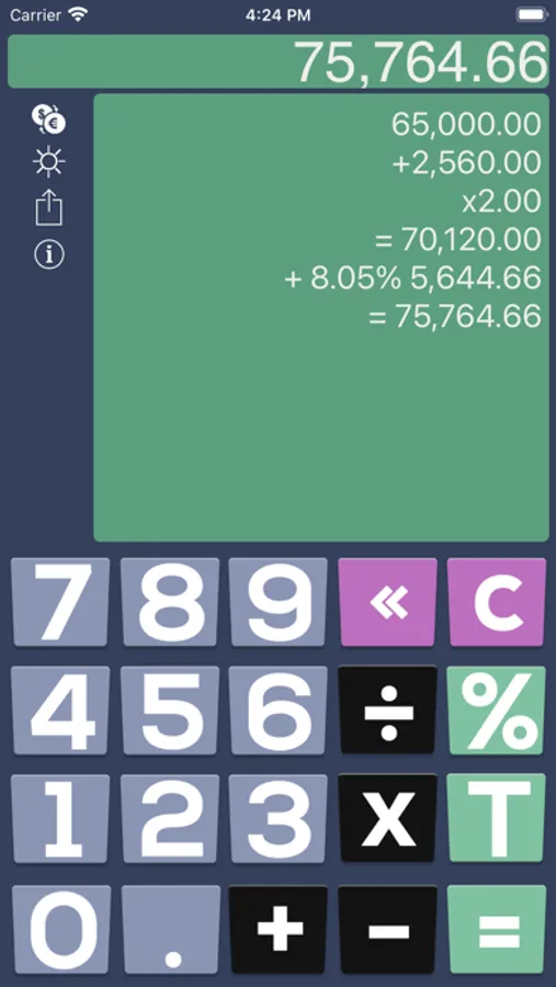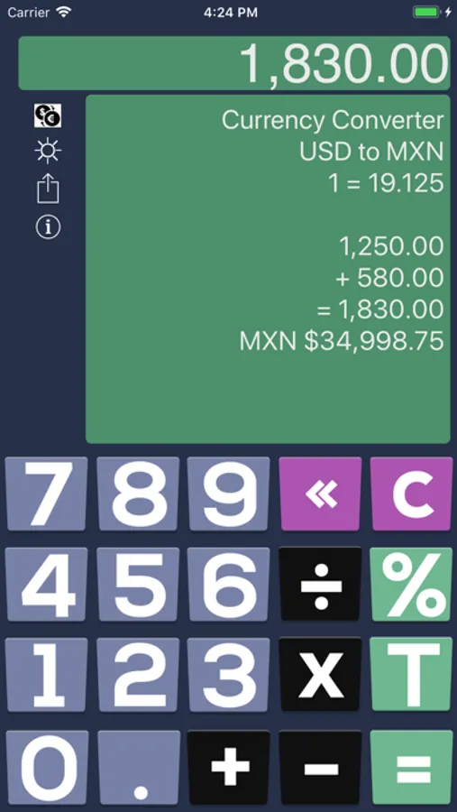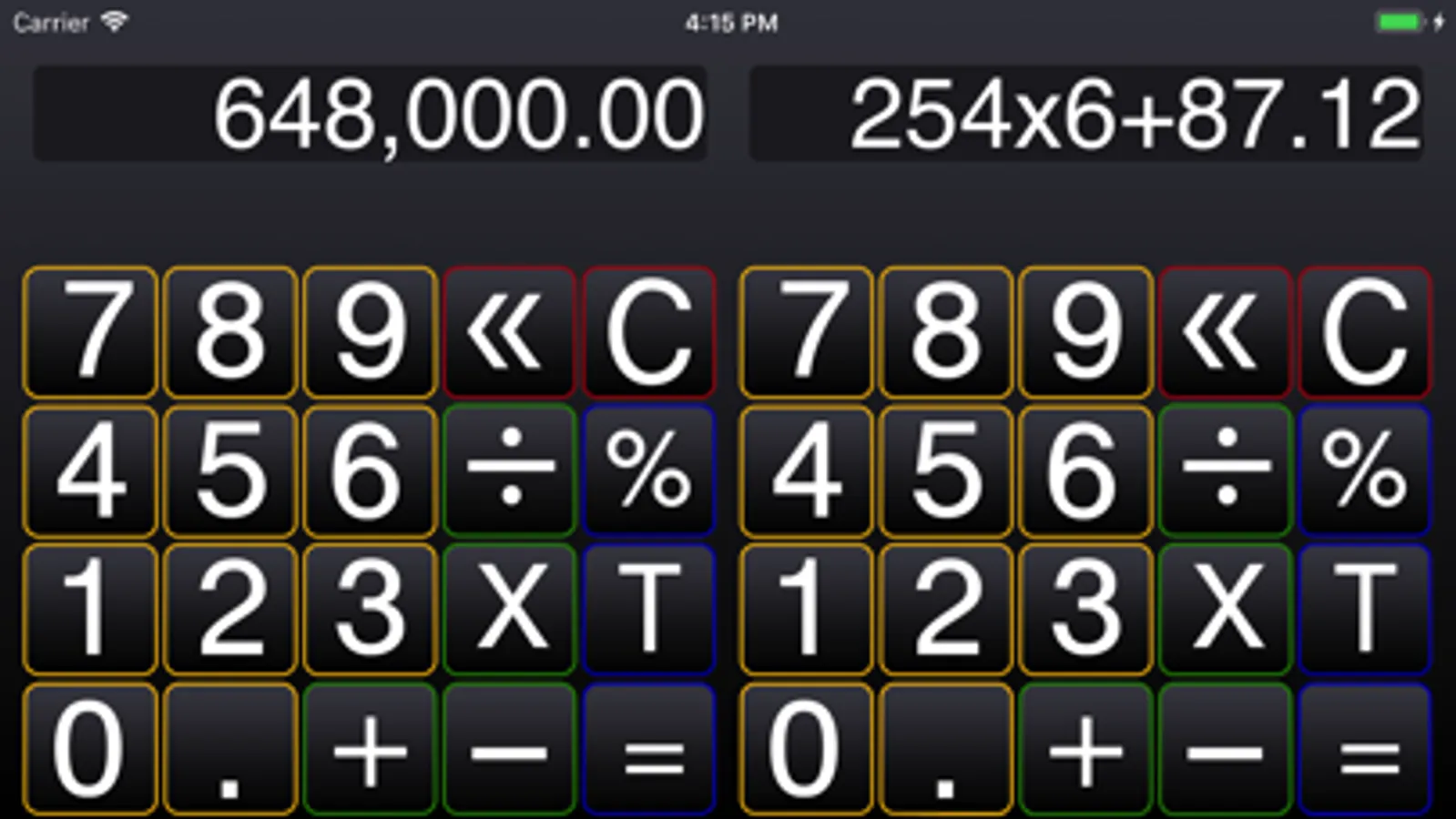Now you can select the In-App purchase to get a second calculator swiping left or right, in landscape mode you get twin calculators in both; iPad and iPhone, exchange results between them. You also get a currency converter supporting 32 currencies and more skins.