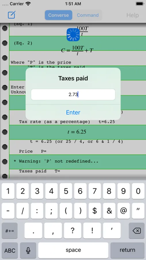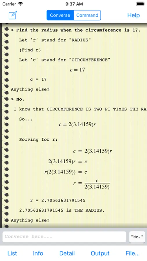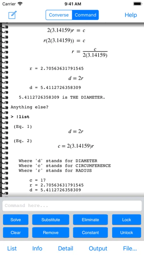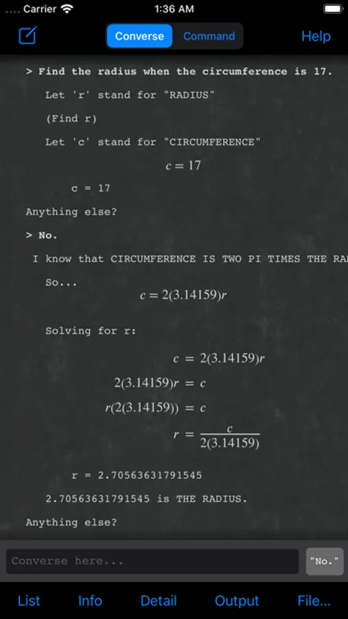 3. AutoMathic lets you do free-form calculations by automatically translating your English-like, conversational input into variables, expressions, and equations to be solved... and then it solves them! You tell it what you know, and ask it what you want to find out!
