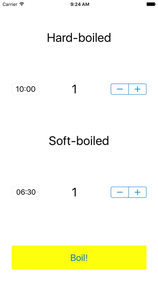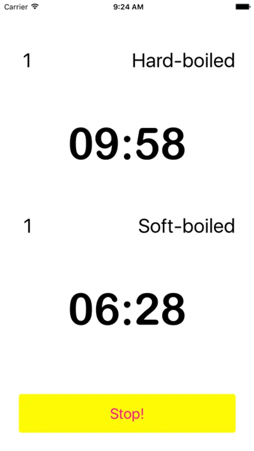 Choose how many and what type of eggs to cook and this app will help you to remember how many to pick upp and after what time!