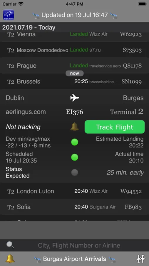 Gives you accurate updated realtime information of Burgas (Bulgaria) Airport's Arrival and Departure Flights.