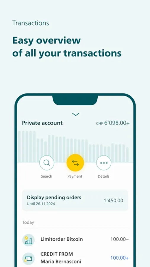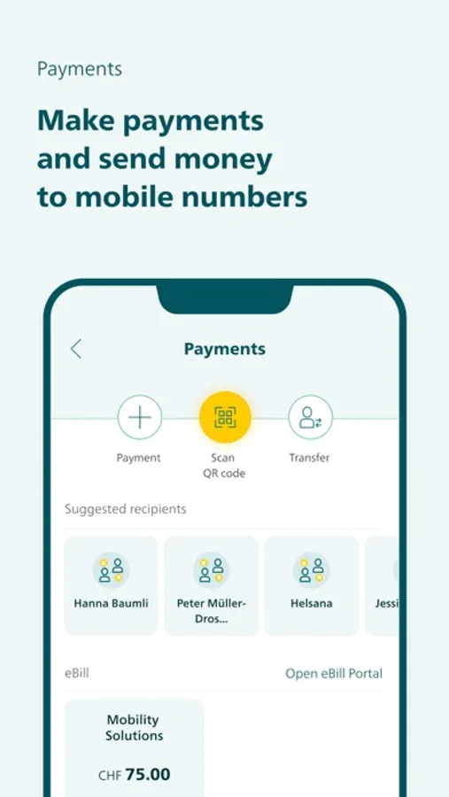 • Scan or upload QR-bills, pay eBills directly in the app and send money easily to mobile numbers.