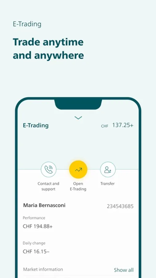 • Track stock market prices, access your custody account and manage your investment products from digital asset management to fund self-service and e-trading.